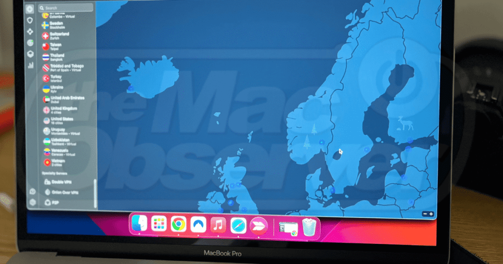 NordVPN’s Mac client is lightweight and doesn’t hog system resources. It auto-connects on startup and includes powerful privacy tools that run quietly in the background.