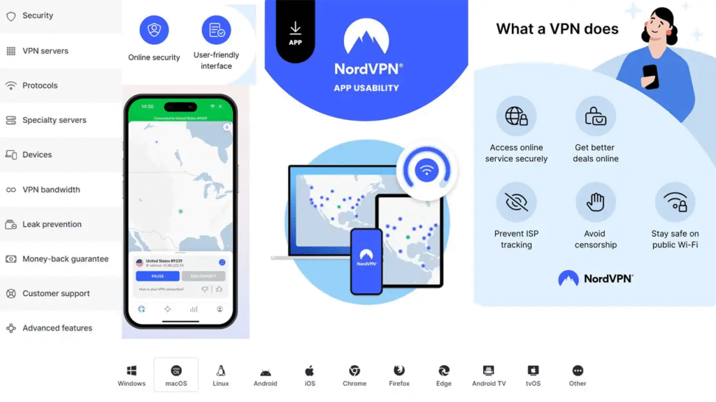 NordVPN stands out with its balance of security, speed, and streaming capabilities. With over 1,900 servers in the US alone, it delivers fantastic performance.