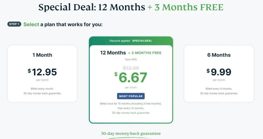 • Likely a 48% discount + 4 free months on a 1‑year plan (~$6.25/month) if offered, based on past deals.