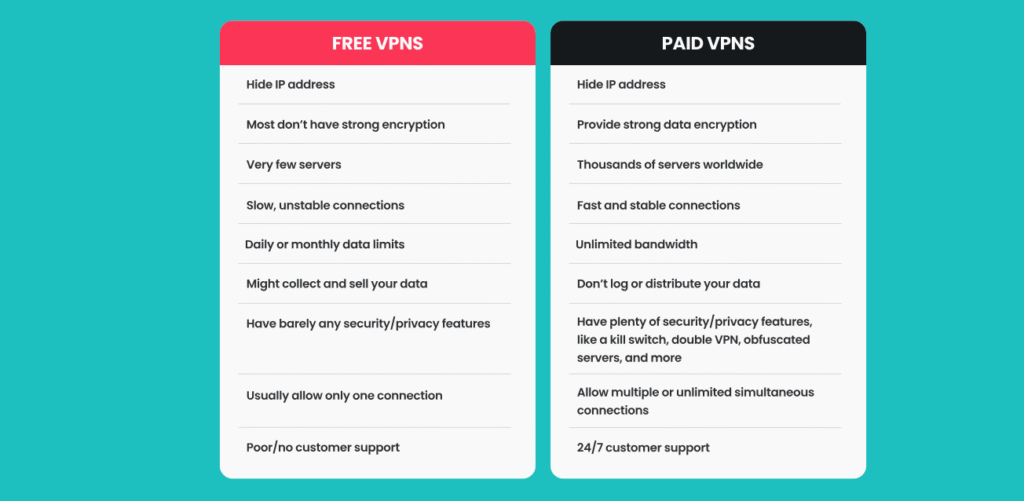 - Paid VPNs, while costing money, offer far better protection, performance, and reliability.
