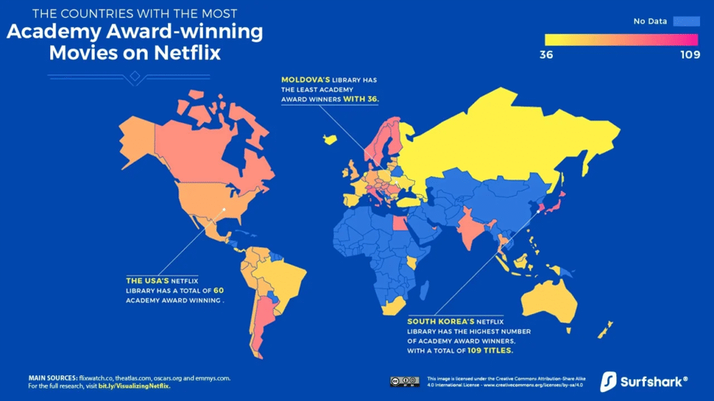 Netflix has different content libraries for each country. For example:
