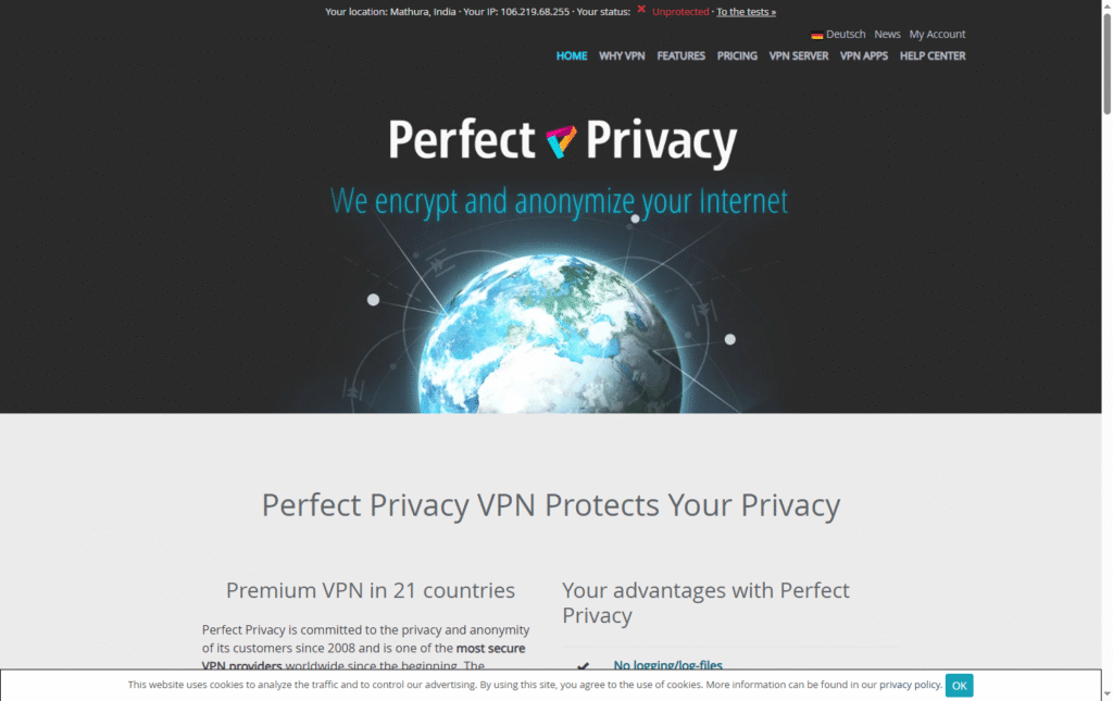 - Perfect Privacy operates under a strict no-logs policy to protect user identity and activity.