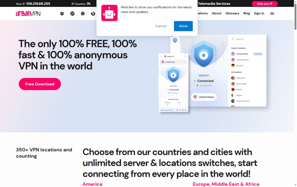 UrbanVPN is one of the few completely free VPNs on the market that continues to draw attention in 2025. Promising unlimited bandwidth, global servers, and zero subscription costs, it positions itself as the go-to VPN for budget-conscious users.
