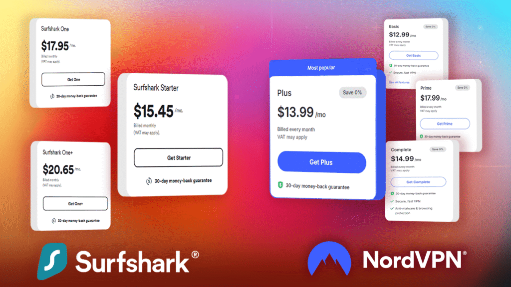 Choosing between Surfshark and NordVPN can be tough. Both are top‑tier VPN providers with excellent speed, strong encryption, and advanced features. In 2025, NordVPN still leads in performance and server coverage, while Surfshark offers unbeatable value and unlimited device support. This in‑depth Surfshark vs NordVPN comparison gives you everything you need — from security audits and protocols to streaming access, torrenting, privacy, and more — to make the right choice.